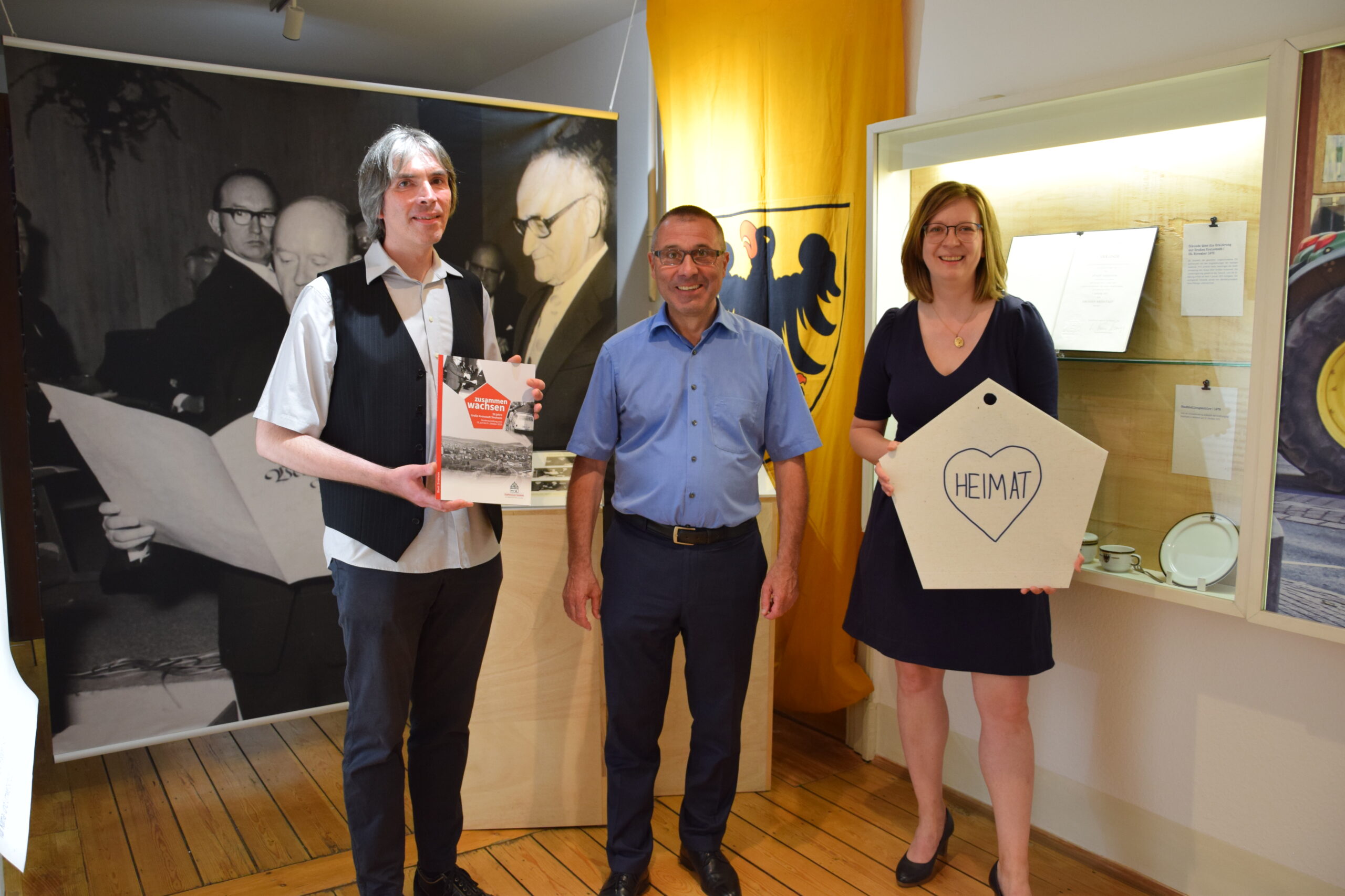 Viel ist seither passiert, und dem widmet sich die neue Ausstellung im Stadtmuseum Sinsheim, die am 12. Juni 2023 um 17:00 Uhr feierlich eröffnet wurde. Unter dem Motto „zusammen wachsen – 50 Jahre Große Kreisstadt Sinsheim“ beleuchtet die Ausstellung in drei Abschnitten den langen Weg zur Kreisreform. Teil eins widmet sich dem alten Landkreis, seinem Landrat Paul Hermann sowie dessen Wirkungsbereich. In Teil zwei werden die Reform und die, so Museumsleiterin Dinah Rottschäfer, „teilweise emotional geführten Debatten“ vorgestellt, die letztendlich zur Eingemeindung der zwölf Gemeinden führten. Zuletzt blickt die Ausstellung auf die Große Kreisstadt heute und ihre Verortung im Rhein-Neckar-Kreis.