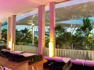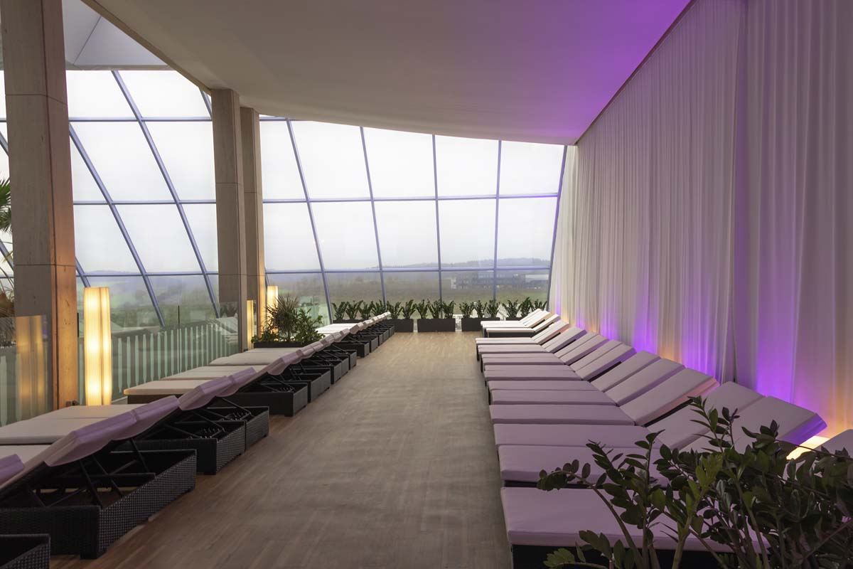 (zg) Zum 6. Thermengeburtstag am 19. Dezember eröffnete die Thermen und Badewelt Sinsheim die neue Sky Lounge im Palmenparadies. Ab sofort haben nun auch Gäste in Badebekleidung die Möglichkeit einen gemütlichen Liegebereich über dem Palmenparadies zu nutzen. Die neue Sky Lounge bietet eine herrliche Aussicht über die mehr als 400 Südseepalmen sowie die türkisfarbene Lagune und das tropische Dampfbad. Über 50 elegante Einzel- und Doppelliegen laden zum Ruhen und Entspannen ein. Besonders in der Abenddämmerung, wenn die Sonnenstrahlen durch die Blätter der Palmen scheinen, genießen die Gäste eine einmalige Atmosphäre.