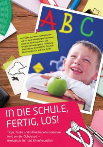 (zg) In die Schule, fertig, los! Tipps, Tricks und Informationen rund um den ökologisch, fairen und klimafreundlichen Schulstart gibt es nun in einer Broschüre, die der Rhein-Neckar-Kreis zusammen mit der Stadt Heidelberg, der Klimaschutz- und Energie-Beratungsagentur Heidelberg – Rhein-Neckar-Kreis (Kli-BA), Ökostadt Rhein-Neckar e.V. und dem BUND aufgelegt hat.