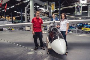 Angeliefert wurde das Flugzeug von Eric und Irena Raymond. 2015 gelang dem Paar die Alpenüberquerung in einem solarbetriebenen Passagierflugzeug. „Die beiden sind Pioniere in der Solarfliegerei“, stellt Thomas Neudel klar. Er muss es ja wissen – als Hobbyflieger und ehemaliger Vorstand von Flugsportring Kraichgau e.V. Sinsheim kennt er sich mit der Fliegerei aus. Zusammen mit Hans Werner Beck, ebenfalls Mitglied im Flugsportring, vermittelte er den Sunseeker an das Museum: „Als Museumsmitglied war es für mich klar, dass dieses Stück technische Geschichte nach Sinsheim muss. Schließlich ist dieses Flugzeug ebenfalls ein Oldtimer. Hier stehen die Elektrofahrzeuge der ersten Stunde und finden Events rund um die zukünftigen Antriebsarten, wie der E-Mobilitätstag, statt.“