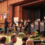 Zwischen den Ehrungen begeisterte der Mundartkabarettist Arnim Töpel, die Big Band der Städt. Musikschule und Bump Street Percussion die vielen Gäste und lockerten die Ehrungen auf.