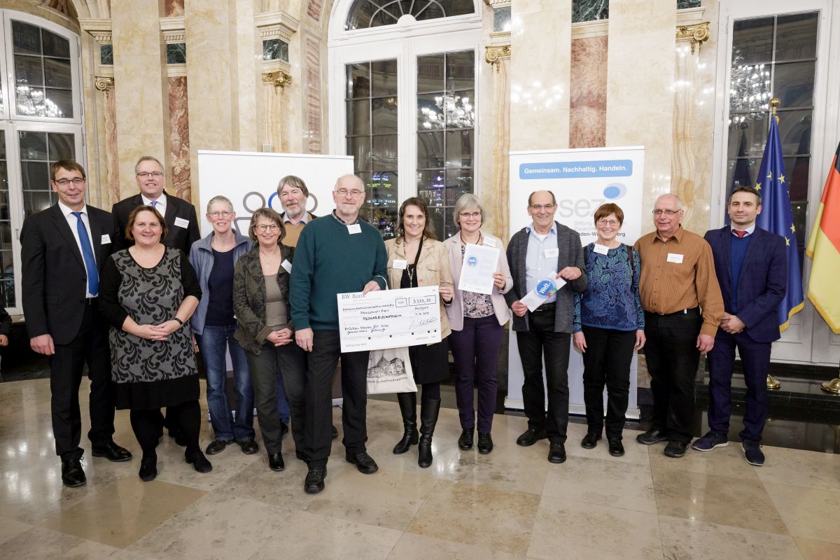 Neun baden-württembergische Kommunen erhielten am 11. Dezember 2019 im Marmorsaal des Stuttgarter Neuen Schlosses Preisgelder in Höhe von insgesamt 30.000 Euro. Sie haben sich bei der landesweiten Initiative Meine. Deine. Eine Welt. durch besonderes Engagement für eine nachhaltige Entwicklung ausgezeichnet, ihre Bürgerinnen und Bürger haben bewiesen, dass jede und jeder etwas für eine gerechtere und zukunftsfähige Welt tun kann.