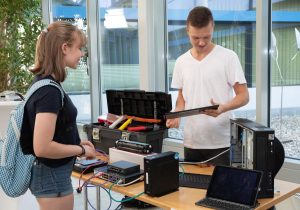 (zg) Trotz der Sommerhitze nutzten viele Jugendliche und ihre Eltern das Angebot, die Berufsvielfalt im Landratsamt Rhein-Neckar-Kreis und in den AVR-Unternehmen kennenzulernen. Am vergangenen Mittwoch, 24. Juli, öffnete die Behörde ihre Türen, und beantwortete alle Fragen zu Ausbildung, Studium und Praktikum in den Fachbereichen Vermessung, Flurneuordnung, Straßenbau, IT, Soziale Arbeit und Verwaltung. Dass es beim Landratsamt nicht nur „Büro-Jobs“ gibt, sondern auch technische Berufe wie Straßenwärter, Forstwirt, Vermessungstechniker oder Fachinformatiker ausgebildet werden, sorgte bei einigen Besucherinnen und Besuchern für Erstaunen.