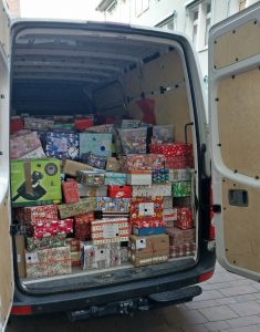 Den Sinsheimer Spenderinnen und Spendern, besonders den Schülerinnen und Schülern aller beteiligten Schulen und Kindergartengruppen sei herzlich gedankt für ihr Engagement und ihre liebevoll gepackten Geschenke, um bedürftigen Kindern in Barcs eine Weihnachtsfreude zu bescheren. Besonders viel Mühe hatten sich die Jugendlichen der Mobilen Jugendarbeit in Sinsheim mit Laura Olbert gegeben: Sie hatten die Päckchen bemalt und beklebt.