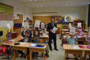 Oberbürgermeister Jörg Albrecht besuchte den Unterricht der 1. Klasse und beteiligte sich unter anderem am aktuellen Unterrichtsthema „Verkehrserziehung“ zu dem die Kinder schon sehr viel Wissen beitragen konnten.