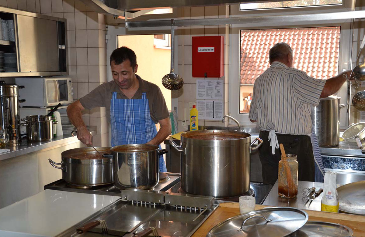 „Hallo zusammen, schee, dass Ihr all do seid!“ begrüßt der „Chefkoch“ die Gesellschaft. Eine Schürze hat Albrecht um acht Uhr in der Früh’ umgebunden und sich an die Arbeit gemacht.