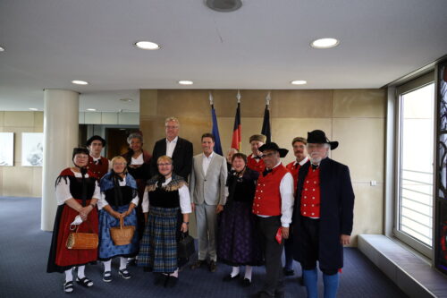 Nach zweijähriger pandemiebedingter Pause hat der Landtag Baden-Württemberg wieder seine Türen für Bürgerinnen und Bürger geöffnet. Mit dabei war auch die Odenwälder Trachtengruppe Steinachtal, die der Einladung des Sinsheimer Landtagsabgeordneten Dr. Albrecht Schütte MdL gefolgt ist. Schütte löste damit ein Wahlkampfversprechen ein, welches er und Manuel Hagel, Fraktionsvorsitzender der CDU im Landtag bei einem Besuch in Schönau gegeben hatten. „Demokratie lebt vom Austausch und Begegnungen. Ich freue mich daher sehr, dass ich Bürgerinnen und Bürger aus meinem Wahlkreis wieder im Landtag begrüßen kann“, so Schütte. Umso schöner, dass dies passend mit dem 70-jährigen Jubiläum des Landes einhergehe. Nach einem bunten Rahmenprogramm im Landtag, sowohl kulturell als auch politisch, empfangen Dr. Albrecht Schütte und Manuel Hagel die Gruppe im Sitzungssaal der CDU-Landtagsfraktion.