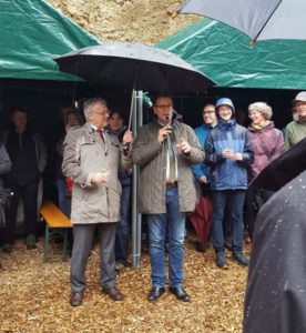 (zg) Der Minister für Ländlichen Raum Peter Hauk und der Landtagsabgeordnete Ulli Hockenberger nahmen die offizielle Übergabe vor zahlreichen Zuschauern vor, die dem Regenwetter trotzten. Vor allem das vorbildliche bürgerschaftliche Engagement, das zum Entstehen des Pfades beigetragen hat, wurde gewürdigt. Die Geo-Pfade bestehen aus zwei 12 und 20 Kilometer langen Rundtouren. Großformatige Tafeln vermitteln den Besuchern die wesentlichen Informationen zu der jeweiligen erdgeschichtlichen Besonderheiten des Kraichgaus und geben markante Einblicke in die geologische Entwicklung der Region.