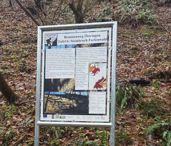 Auf beiden Rundwegen sind die jeweils vorhandenen Aufschlüsse durch eine geschickte Streckenführung miteinander verbunden. Die kürzere Tour verläuft auf der Gemarkung der Kernstadt und wird unter der Bezeichnung Brunnenweg geführt, der längere Hügelweg verbindet Standorte im Bereich von Odenheim, Eichelberg und Tiefenbach. Ganz nebenbei eröffnen sich den Wanderern auf den GEO-Pfaden immer wieder auch reizvolle Ausblicke auf die vielgestaltige Hügellandschaft des vorderen Kraichgaus. Die Idee zu den Pfaden hatte der pensionierte Pädagoge Wolfgang Essig, der die geologischen Besonderheiten zusammen mit weiteren Fachleuten umfassend aufarbeitete und das Vorhaben gemeinsam mit der Stadt Östringen umsetzte. „Insbesondere auch diese Privatinitiative und das Engagement von Östringer Schülern bei der Ausarbeitung hat das LEADER-Auswahlgremium positiv bewertet und trug dazu bei, dass das Vorhaben als Förderprojekt ausgewählt wurde“, so Angelbachtals Bürgermeister Frank Werner, der als stellv. Vorsitzender für den LEADER-Verein anwesend war. Zudem wurde mit den Geo-Pfaden eine weitere Attraktion für Wanderer und Tagesbesucher geschaffen.