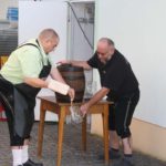 Nach dem Fassanstich durch den Oberschützenmeister ging es mit dem Weißwurstfrühstück los und die Adersbacher Musikanten spielten auf.