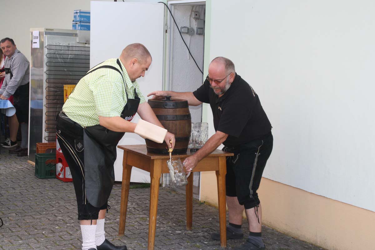 Nach dem Fassanstich durch den Oberschützenmeister ging es mit dem Weißwurstfrühstück los und die Adersbacher Musikanten spielten auf.