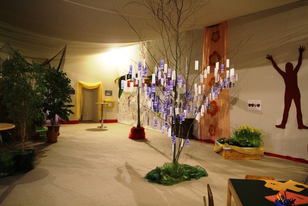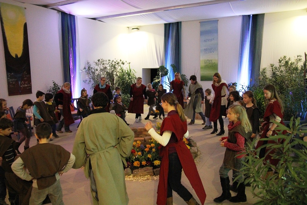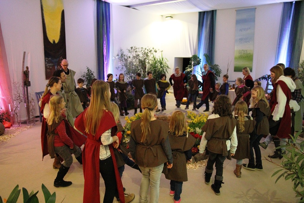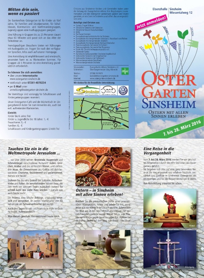 (hjj) Vom 7. bis 28. März hat man die Gelegenheit – geführt – die Passion zu erleben – als Teilnehmer an der biblischen Geschichte. Ich war dort und konnte mich überzeugen. Für Jung und Alt wird hier die Passion in einer einzigartigen Kulisse, aufgebaut in der Elsenzhalle, mit Liebe zum Detail, erklärt und das mit einfachen Worten. Senioren wie auch Kindergartenkinder erleben hier die letzten Stunden von Jesus Christus, also die Passion, in einzelnen Räumen sehr anschaulich aufgebaut und erklärt – man tritt durch die Tür in ein Verlies der Vergangenheit, schlendert durch den Markt, der sich auf das Passahfest vorbereitet, nimmt am Abendmahl teil, wandert durch den Garten Gethsemane, sitzt mit Petrus am Feuer, an dem er Jesus 3 mal verleugnet, bevor der Hahn kräht und befindet sich schließlich bei Pontius Pilatus , danach auf dem Golgata und an der Grabstelle von Jesus, ehe man final im Garten des Friedens ist, wo der „Baum der Erkenntnis“ zu einem Spruch einlädt, den sich jeder individuell pflücken kann. Eine sehr schöne Idee, die man, wenn Zeit, Lust und Muße vorhanden ist, unbedingt erleben sollte. Für kleines Geld und eine freiwillige Spende hat man ein Erlebnis, von dem sicher viel in Gedanken und Geist behalten wird. Es gibt auch eine Ruhezone an der man sich bei einer Tasse Tee oder Kaffee und einem Stückchen Kuchen austauschen oder einfach sinnieren kann. Habe hier ein paar Impressionen eingefangen, die eine positive Entscheidung leicht machen sollte…