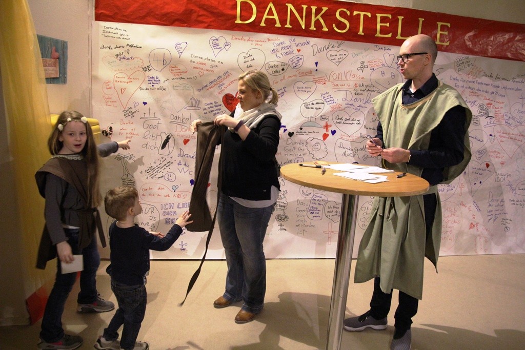 Zum Schluss wird noch zu einem Israelischen Lied der Freude „Hava Nagila“ getanzt, bevor man an der Dankstelle, symbolisch der „Klagemauer“, seine Wünsche und Gedanken aufschreiben kann oder anonym auf eine Karte in einen Briefkasten wirft und so an Gott schickt, mein Fazit : nur schön ! … noch ein Hinweis ; unbedingt anmelden – Führung dauert ca. 45 Minuten – die sich lohnen !