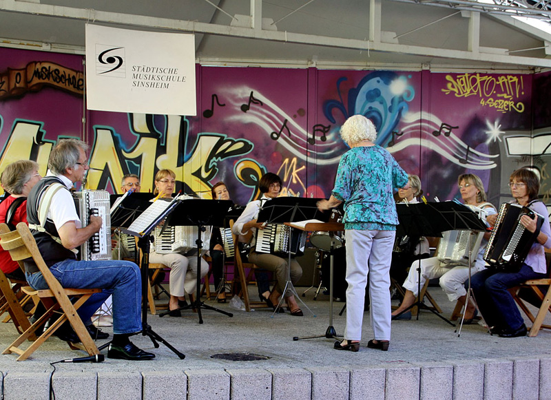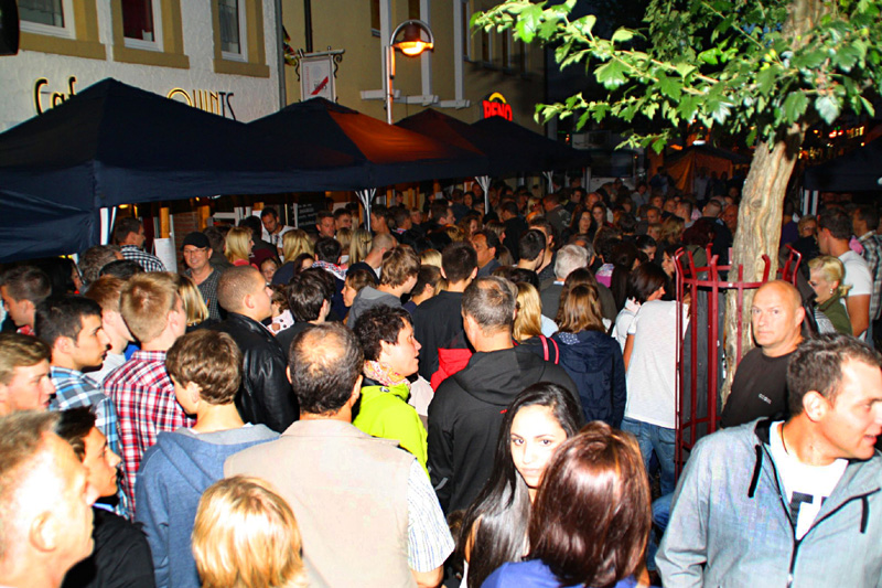 Das Sinsheimer Stadtfest entwickelte sich zur Partymeile. Es wurde gerockt, getanzt, getrunken und gefeiert. Für jeden Geschmack war etwas dabei, von Volksmusik bis Rock, Pop und House. Durch die Fussgängerzone zu laufen wurde von Stunde zu Stunde schwieriger. Bis in die frühen Morgenstunden ging die Party ab.