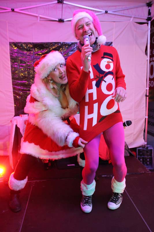 (cr) Wenn die Weihnachtsfrau Alexandra mit dem pinken Elf Schubi zusammen rockt, dann kocht die Weihnachtsstimmung über. Ob Schlager, Pop oder Rock die zwei haben es einfach drauf. Aber auch das ein oder andere Weihnachtsliedchen stimmten so richtig auf den Heiligen Abend ein. Zu späterer Stunde ging die Party dann im Quints weiter. Hier ist es Tradition das Lars Vegas und das Diamantorchester das Café rockt. Ein Event der auf dem weihnachtlichen Sinsheimer Terminkalender nicht fehlen darf.