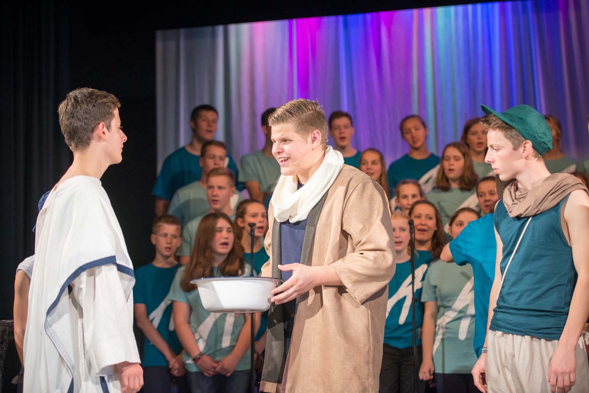 Die Zuschauer in Angelbachtal erwarten 13 brandneue Adonia-Songs, Theater und Tanz, die coole Projektband und einen Jugendchor, der Power hat. Das neuste Musical von Markus Hottiger und Markus Heusser präsentiert die biblische Geschichte aktuell und verständlich in einem abendfüllenden Konzertprogramm für Jung und Alt. Die 70 Mitwirkenden erhielten vor zwei Monaten die Musik-CD und Noten, haben die Lieder zu Hause eingeübt und in einem einwöchigen Musicalcamp die 90-minütige Liveperformance gemeinsam erarbeitet – alles, was zu einem modernen Musical gehört. Das Ergebnis ist immer wieder erstaunlich: Die jungen Christen sind hoch motiviert und begabt. Ihre Auftritte begeistern in Angelbachtal Jahr für Jahr 500 bis 800 Besucher mit erstaunlicher Professionalität und Überzeugungskraft.