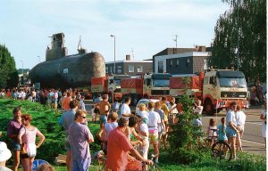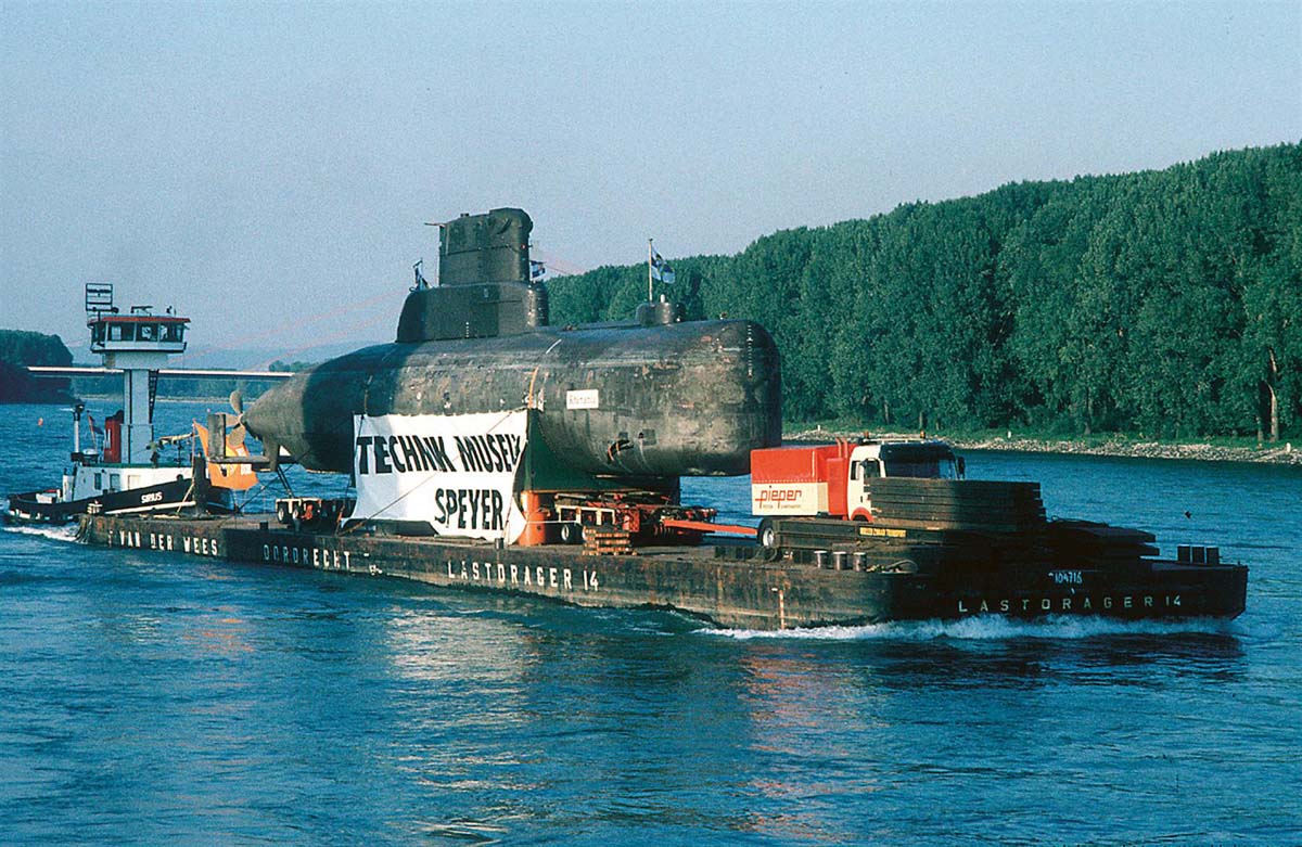 Transportbericht U9: Nach einer außergewöhnlichen Reise über 1.000 Kilometer traf am 20. August 1993 das ehemalige Unterseeboot der Bundesmarine U9 in Speyer ein. Begonnen hatte das Unternehmen im Marinearsenal Wilhelmshaven, wo das Boot seit seiner Außerdienststellung am 3. Juni 1993 lag. Der Hochseeschlepper Apollo unter Kapitän Rypkema nahm das U-Boot auf den Haken, um es durch die Nordsee nach Rotterdam zu schleppen. Nördlich der Insel Wangerooge musste der Schleppzug bei Windstärke 9 umdrehen und wieder nach Wilhelmshaven zurück fahren. Mit drei Tagen Verspätung startete das Unternehmen dann am 13. August 1993. 280 Seemeilen bis Rotterdam waren zurückzulegen. Nach 36 Stunden Fahrtzeit lief der Schleppzug im holländischen Marinehafen Rotterdam ein. Eine Meisterleistung war das Verladen des 420 to schweren U-Bootes auf den Ponton „Lastdrager 14“. Im Hafenbecken wurde der Ponton abgesenkt und zwei Schlepper bugsierten das U-Boot darüber. Taucher justierten das U-Boot U9 zum „Einschwimmen“ in die Transportsättel, die eigens angefertigt und auf dem Ponton befestigt wurden. Nach dieser Arbeit tauchte der Ponton mit Beladung, insgesamt 1.875 to schwer, wieder auf und das Ballastwasser wurde gelenzt. Dann begann die 606 Kilometer lange Reise nach Speyer. Das holländische Spezialschiff „Sirius“ schob den „Lastdrager“ mit dem U-Boot vor sich her. 1.500 to waren zu bewegen. Der Transport lief z.T. auch nachts, da die Zeit drängte. In Speyer angekommen ging es für das U-Boot dann auf einem speziellen Tieflader in Schrittgeschwindigkeit über die Landstraße ins Museum. Tausende begleiteten den Transport und gaben U9 sozusagen „Geleitschutz“. Fünf Wochen dauerte es bis U9 ausstellungsfähig hergerichtet und für die Besucher zugänglich war. Das U-Boot U9 ist eines der beliebtesten Ausstellungsstücke der Besucher und feiert in diesem Jahr 25 Jähriges Standortjubiläum. Informationen gibt es auch unter www.technik-museum.de/U9.