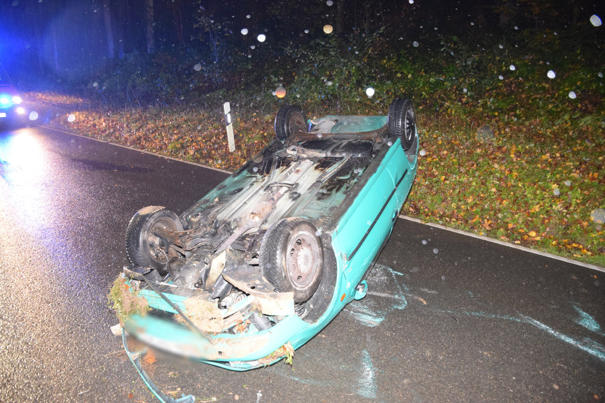 Sinsheim-Adersbach. (red) Freitagnacht ereignete sich auf der Kreisverbindungsstraße 4284 zwischen Adersbach und Neckarbischofsheim ein Verkehrsunfall, bei dem eine Person verletzt wurde. Die Fahrerin eines VW Polo hatte kurz nach Mitternacht die Straße in Richtung Adersbach befahren. Aus bislang unbekannter Ursache war sie auf regennasser Fahrbahn nach rechts abgekommen und schräg die Böschung hinaufgefahren. Der Polo wurde angehoben und landete mit dem Dach auf der Straße wo er noch einige Meter schlidderte. Die Unfallfahrerin wurde verletzt und in das Sinsheimer Krankenhaus eingeliefert. Im Einsatz waren neben dem Rettungsdienst und der Polizei auch die Freiwilligen Feuerwehren aus Adersbach, Rohrbach, Sinsheim und Hasselbach. Am Polo entstand Totalschaden – er musste abgeschleppt werden. Die Straße war während der Unfallaufnahme kurzzeitig gesperrt.