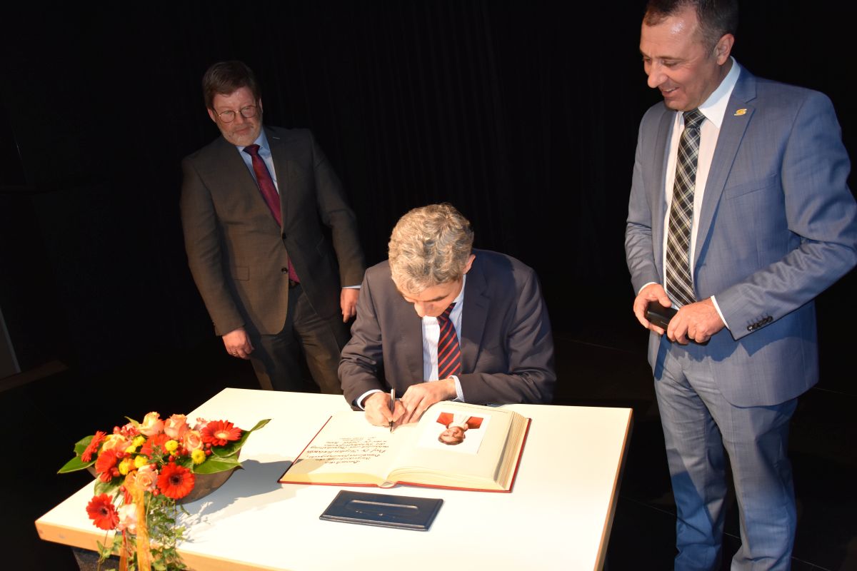 Der Gast nutzte die Gelegenheit seines Besuchs, sich in das Goldene Buch der Stadt Sinsheim einzutragen. In seinem Grußwort überbrachte er den Bürgerinnen und Bürgern der Großen Kreisstadt alle guten Wünsche für das neue Jahrzehnt.