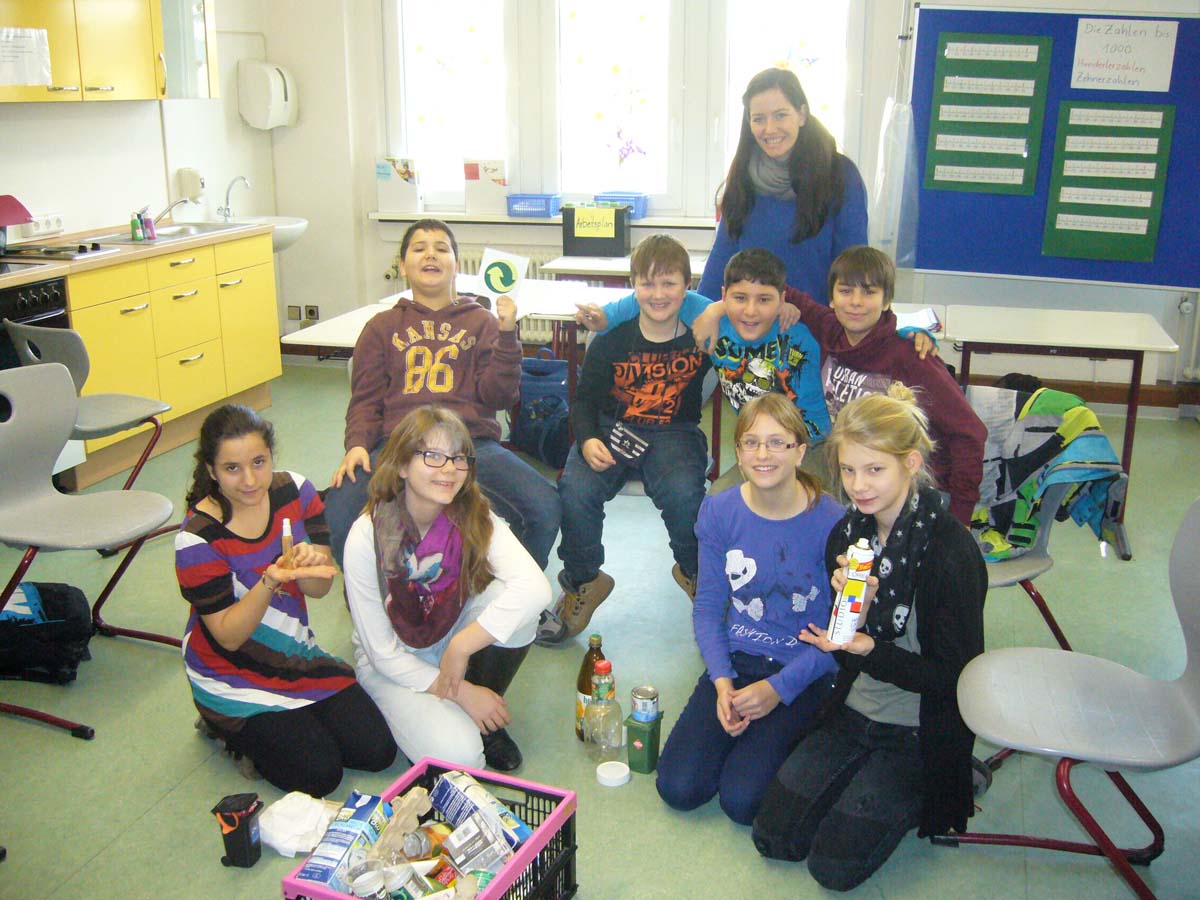 So erfuhren die Klassen im Laufe des Vormittags, dass nicht alles „Müll“ ist, was in den Abfallbehältern liegt, sondern teilweise als Rohstoff für neue Produkte verwendet werden kann.
