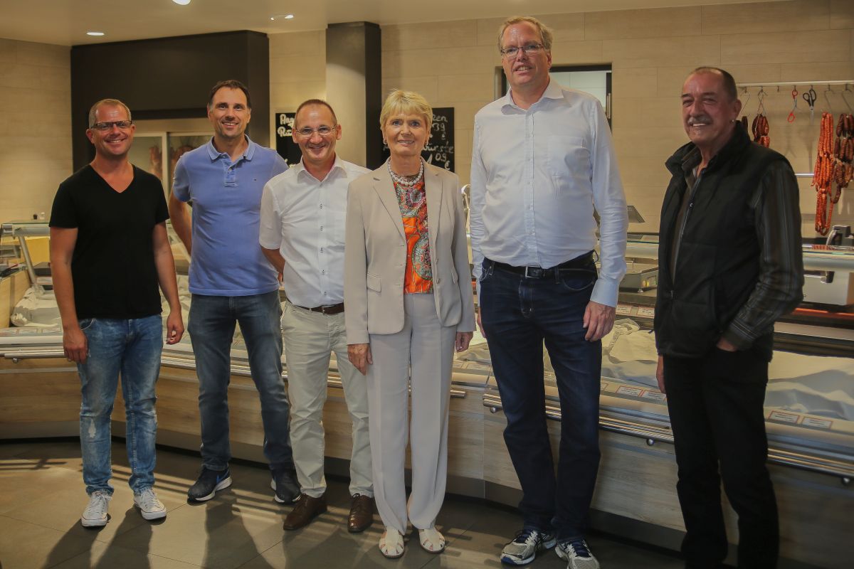 Sowohl beim Besuch der Metzgerei Hess, als auch im Anschluss in der Verkaufsstelle der Metzgeier Pyck in Eschelbach konnten sich die Besucher von der Qualität der regionalen Produkte überzeugen. „Mit dem Gütesiegel Schmeck den Süden haben wir einen Standard für Regionalität gesetzt“, so Staatssekretärin Gurr-Hirsch und wies im weiteren auf die Vorteile von regionalen Produkten für Qualität, artgerechte Tierhaltung und die heimische Landwirtschaft hin. Schließlich wisse man nur bei regionalen Produkten, was darin enthalten sei, weswegen Regionalität eine Chance für kleinere Betriebe sei. „Wo sonst sehen Sie – wie bei Erwin Hess – beim Einkauf das Bild des Bauerns an der Kasse eingeblendet, von dem die Tiere stammten?“