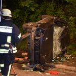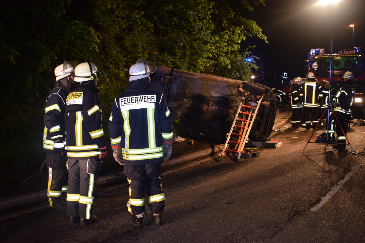 Die Scheiben des Fahrzeugs wurden eingeschlagen und die Insassen mit Hilfe von Anwohner aus dem Fahrzeug geborgen.