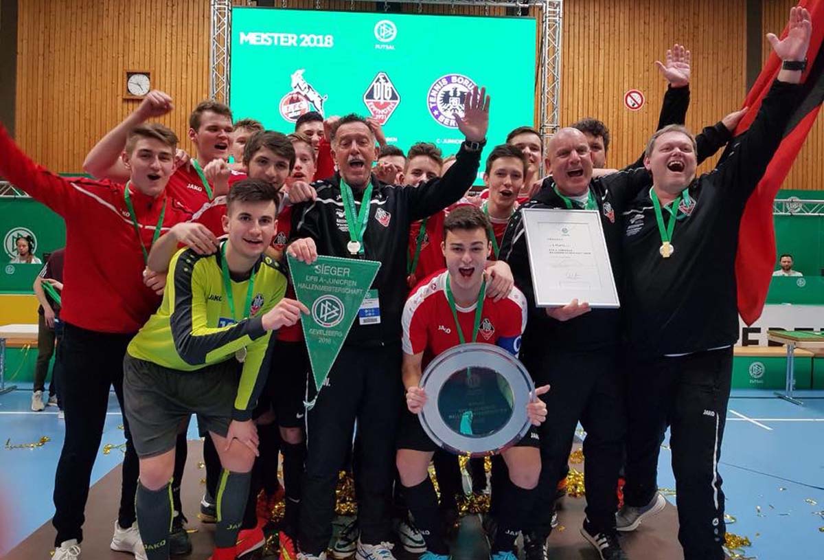 Nach dem Gewinn der Kreismeisterschaft, dem Sieg bei den Badischen Futsal-Meisterschaften gelang am 4.März dieses Jahres der Coup bei den 1.Süddeutschen Futsal-Meisterschaften im schwäbischen Ehningen. Damit verbunden war die Qualifikation für die erstmalige Austragung des DFB-FutsalCup für die A-Junioren am letzten Wochenende in Gevelsberg, in der Nähe von Dortmund.