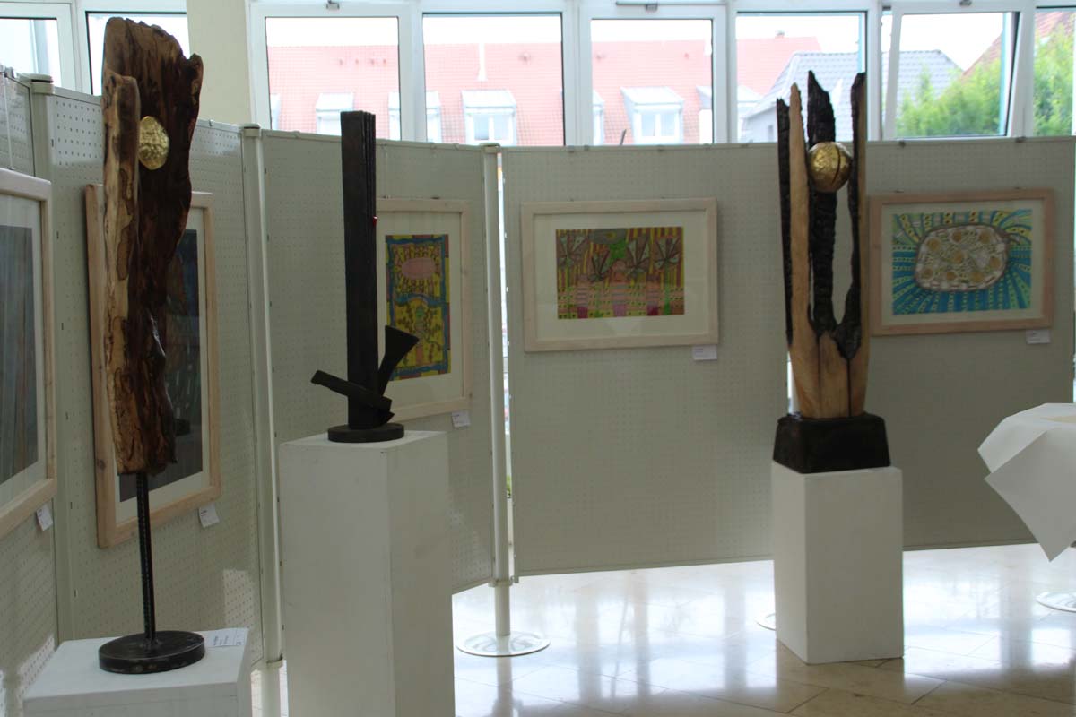 Doch nun zu den Werken, diese Ausstellung ist einfach sehenswert und sollte in der nächsten Zeit von den Sinsheimern unbedingt besucht werden, denn sowohl die natürlichen Werke des Bildhauers Reinhard Hemmer, wie auch die unterschiedlichen Werke der zum Teil schon international bekannten Künstler der Kraichgauer Kunstwerkstatt sind absolut sehenswert. Besuchen sie einfach das Rathaus zu seinen Öffnungszeiten und tauchen sie in eine faszinierende Welt der Kunst ein.