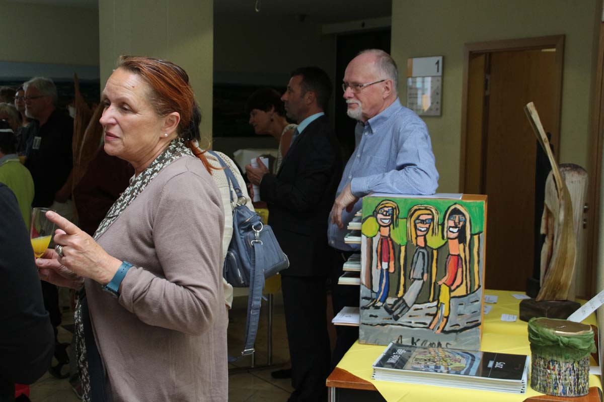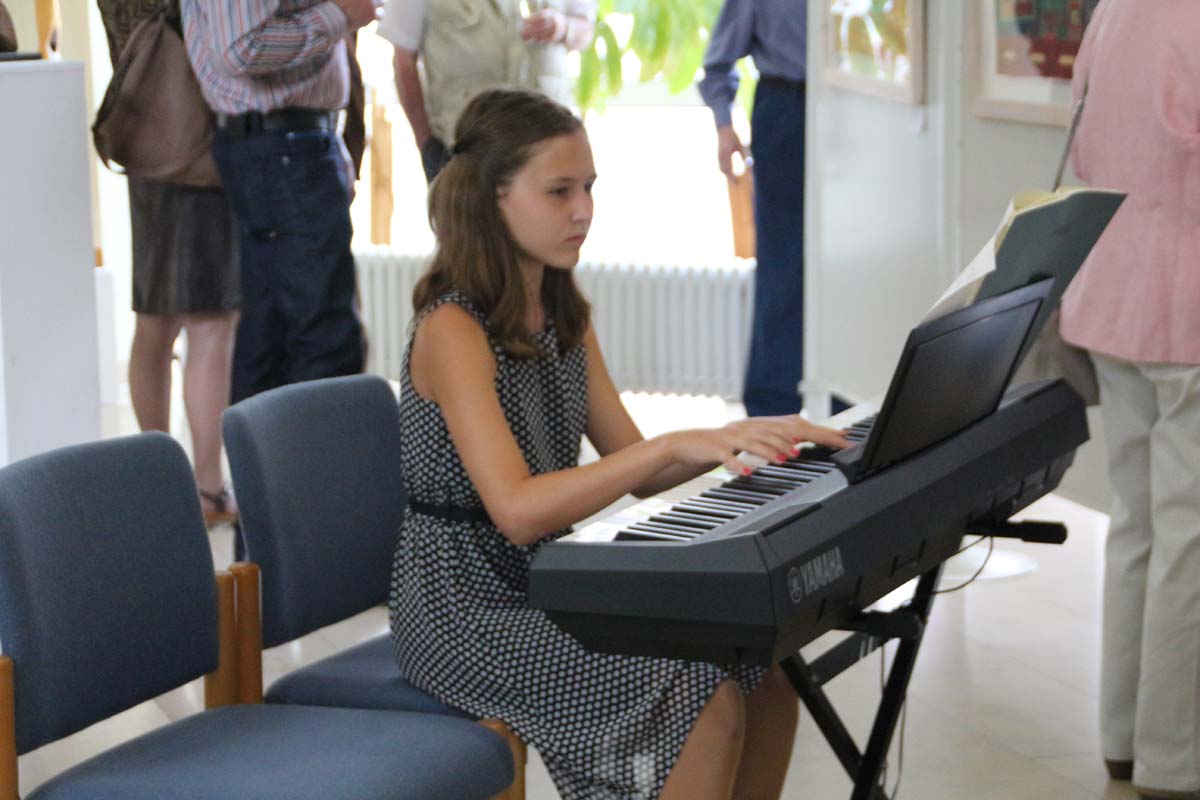 cr) Was für eine Vernissage. Schade das es soviele verpasst haben, aber für diejenigen die daran teilnahmen war es wirklich etwas Einzigartiges und Besonderes. Schon die Mädels der Musikschule Sinsheim am Piano waren eine wahre Pracht und erfreuten das Publikum mit zwei und vierhändigen Stücken. Auch die Begrüssung von OB Jörg Albrecht und die Laudatio von Lutz Petersen waren wie immer gekonnt.