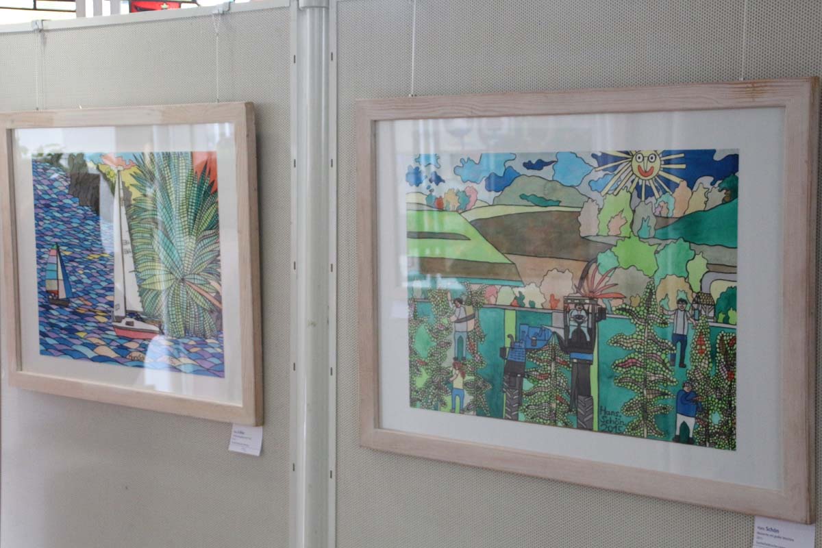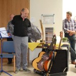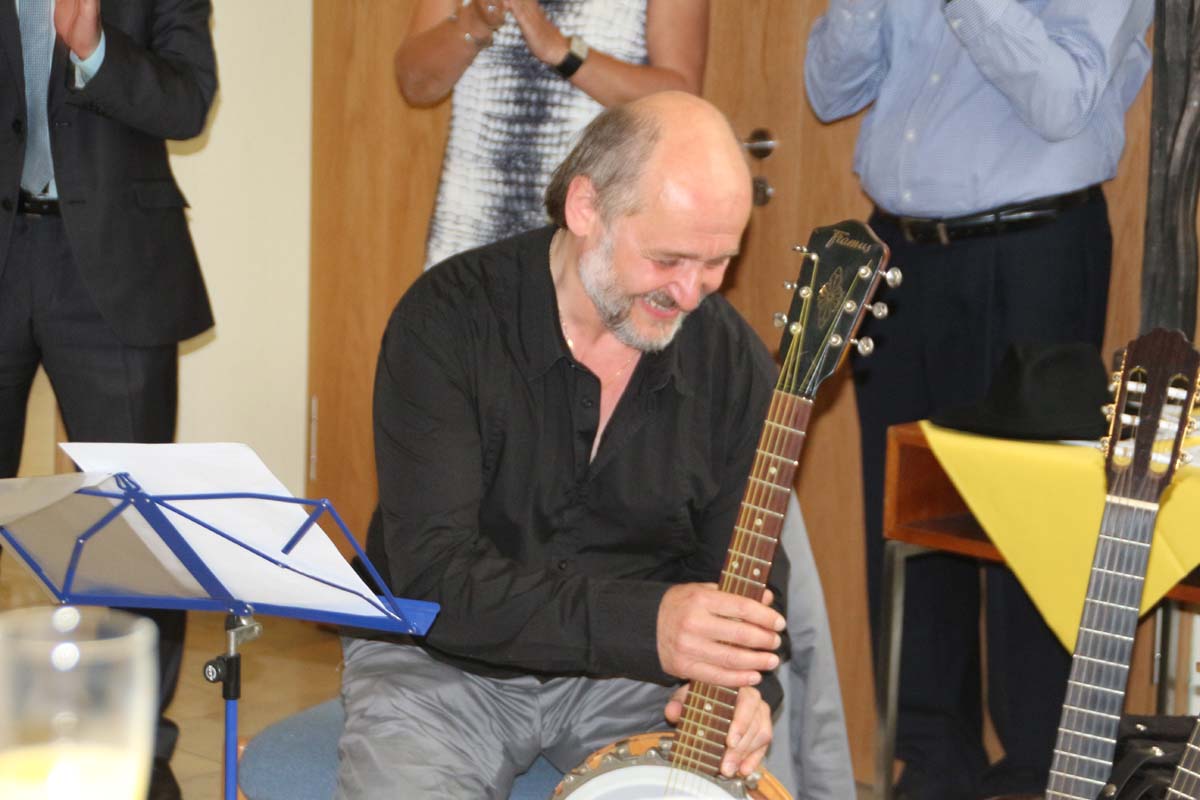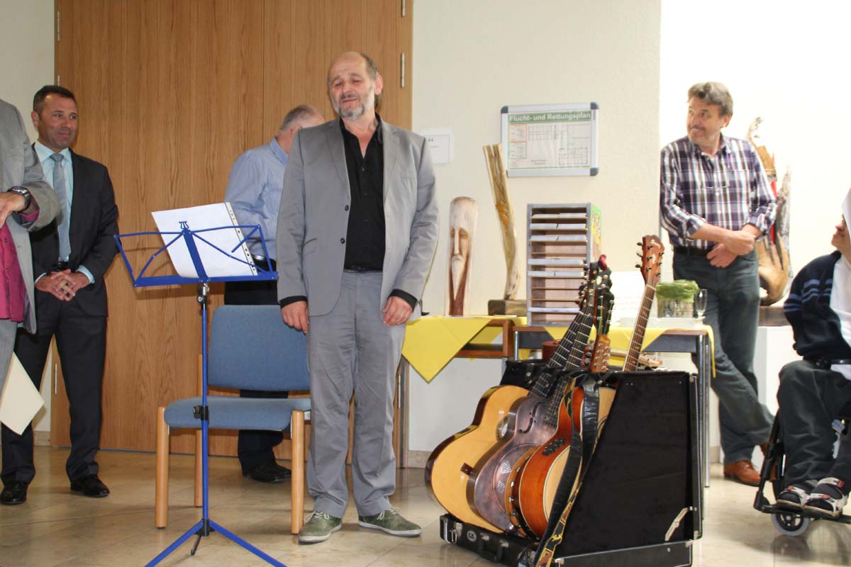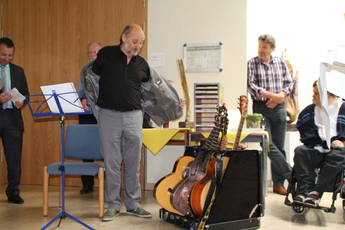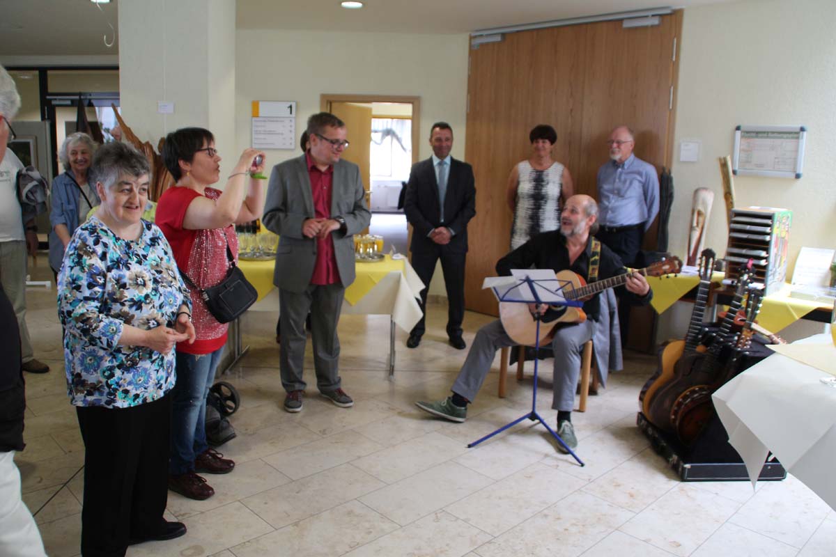 Doch sensationell gut war die musikalische Vorstellung der Künstler der Kraichgauer Kunstwerkstatt durch den Atelierleiter Georg Philipski. Selten hat man eine so tolle Homage gesehen und gehört. Jedem Künstler wurde ein eigenes Lied mit Text gewidmet, passend zu der jeweiligen Persönlichkeit.