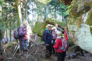 Bei angenehmen, herbstlichen Temperaturen wanderte die 26 Personen starke Gruppe des Odenwaldklub Neckarbischofsheim im Reisenbacher Grund. Vom Landgasthof „Zum Grund“ ging es zunächst auf gut zu gehenden Wegen zum ehemaligen Unterferdinandsdorf. Hier erfuhren wir vom stellvertretenden Wanderführer einiges über das karge Leben der Menschen dieser Gegend. Die bittere Not zwang die Bewohner dieses Dorfes in ferne Länder auszuwandern. Der bekannte Begriff „Bettelmannsumkehr“ machte in diesem Tal seinem Namen alle Ehre. Die Dörfler waren hier so arm, dass selbst zu damaliger Zeit die Bettler zur Umkehr gezwungen waren. In dieser kargen Gegend trieb auch zu früheren Zeiten die Bande des Hölzerlips sein Unwesen. Am sogenannten Felsenhaus, einer imposanten Felsformation, konnte die Wanderschar die Verstecke dieser Bande in Augenschein nehmen. Vorbei am Steinernen Tisch zog es die wanderfreudige Truppe anschließend hinauf in den Ort Mülben, wo die verdiente Mittagsrast eingelegt wurde. Bis zum Mülbener See, der mangels Wasser einer Mondlandschaft glich, war es dann nicht mehr weit. Von hier aus liefen die OWK`ler alsdann immer talwärts durch das schöne Naturschutzgebiet Schannewald. Auf bemoosten Pfaden, links und rechts des Weges ganze Pilzkolonien, kehrten wir dann in das reizvolle Tal des Reisenbacher Grunds zurück, um im Landgasthof den Wandertag gemütlich ausklingen zu lassen.