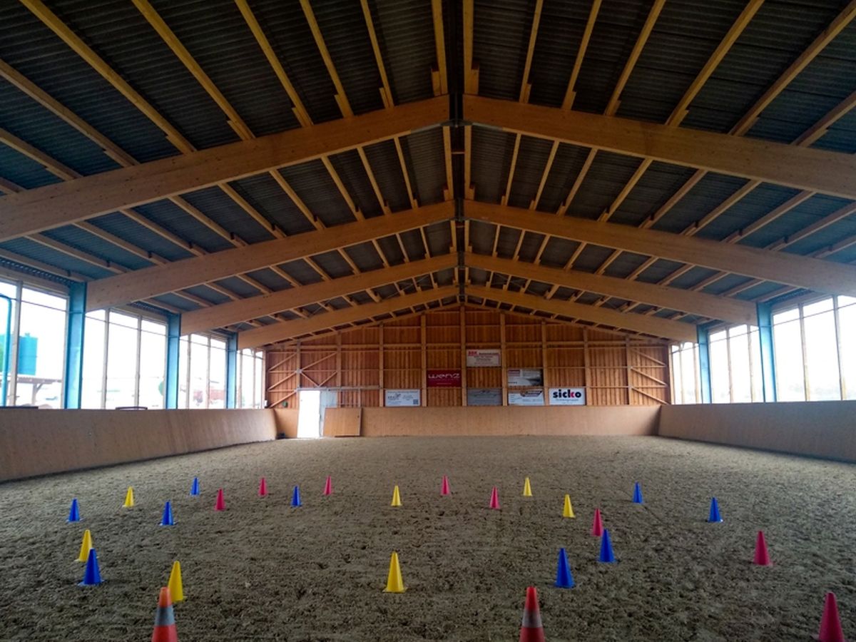 (zg) Claudia Kohm aus Sulzfeld ist Pferdebegeistert. Bereits seit einiger Zeit betreibt sie mit ihren eigenen Pferden eine Kinderreitschule. Die Wartelisten für die Angebote waren lang und zu-dem war das Angebot sehr wetterabhängig. Ein wirtschaftlicher Betrieb war nicht möglich. Es gab keine Reithalle, keine sanitären Anlagen und das Angebot musste mit weiteren Pferden ausgebaut werden. Claudia Kohm wollte ihr Hobby zum Beruf machen und bewarb sich um Fördermittel aus dem LEADER-Programm. Das Programm unterstützt Existenzgründungen von Frauen, in dem Teile der Kosten für die Startinvestitionen übernommen werden. Dieser Förderbereich von LEADER nennt sich „Innovative Maßnahmen für Frauen im Ländlichen Raum“, kurz IMF. Die Anfangsinvestitionen waren der Bau einer Reit- und Aktionshalle, eines Theorieraums, eines Pferdeklassenzimmers und einer Sattelkammer als Praxisraum. Beson-deren Wert bei dem Betrieb der Reitschule legt Claudia Kohm vor allem auf soziale Aspekte. Kinder und Jugendliche sollen davon profitieren, die aufgrund finanzieller oder anderer Be-einträchtigung keinen Zugang zum Umgang mit Pferden hätten. Die Reitschule wird nach Hippolini umgesetzt. Hippolini ist ein spezielles Lizenz- und Qualifizierungsprogramm und steht für pädagogisches Reiten. Ein großer Teil des Konzeptes ist die Vermittlung eines ver-antwortungsvollen Umgangs mit Tier und Mensch. Neben Pferd und Sattel kommen auch Spielsachen, Videovorführungen, Bücher, Malstifte und Zeichenblöcke zum Einsatz. Dabei steht auch der ländliche Raum und das besondere Verhältnis zu Tieren im Vordergrund.