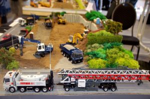 Bereits von weitem begrüßen original Baumaschinen und Krane die Besucher auf ihrem Weg zur Ausstellungshalle und verdeutlichen die gigantischen Originalmaße der in der Halle gezeigten Modelle. In den Hallen präsentieren die Aussteller stolz neben den historischen Miniaturen auch seltene Bausätze, Maschinen namhafter Firmen sowie ganze Offshore-Anlagen – alles in einer Miniaturausgabe, die mitunter selbst schon gewaltige Ausmaße besitzen. Ferngesteuerte Trucks und Bagger kommen in der Halle und in einer Sandgrube zum Einsatz – so kommen kleine und große Fans ganz auf ihre Kosten.