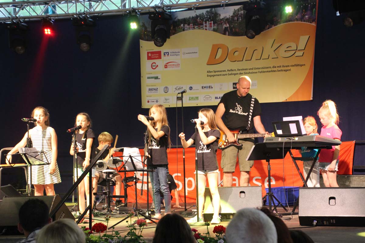 (cr) Die gehören einfach auf die Bühne. Rock´n´School sind die Nachwuchsband der Grundschule Hilsbach / Weiler. Die haben immer ein so riesen Spass auf der Bühne des Fohlenmarktes und man muss sie einfach ins Herz schliessen. Ein riesen Dank gebührt hier dem Rektor der Schule Andreas Schell für seine Nachwuchsarbeit.