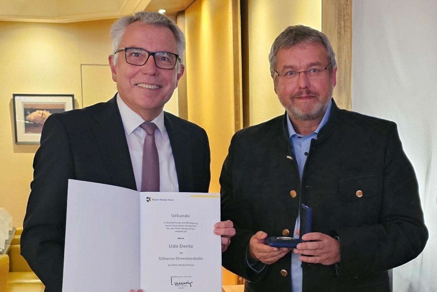 „Der Rhein-Neckar-Kreis dankt Udo Dentz für sein herausragendes Wirken für den Kreis und seine Einwohnerinnen und Einwohner und verleiht ihm deshalb die Silberne Ehrenmedaille mit Urkunde des Rhein-Neckar-Kreis. Für die Zukunft wünschen wir ihm viel Glück und vor allem Gesundheit“, sagte Dallinger abschließend.