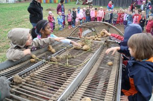 Beim praktischen Ernten war dann aber jeder mit vollem Elan dabei. Auch sie wurden mit der bekanntesten Kartoffelspezialität und Getränken verköstigt. Am Abend gab es dann noch ein abschließendes Essen mit Folienkartoffeln im Feuer.