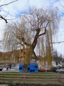 Die Trauerweide bleibt bis zur endgültigen Fällung in den nächsten Jahren erhalten.