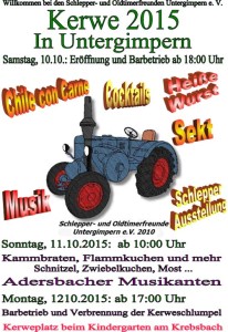 11.10.2015-00 UntergimpernEinladung zu unserer Kerwe vom 10.10-12.10.2015 auf dem Kerweplatz beim Kindergarten am Krebsbach in Untergimpern.