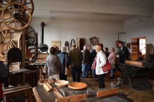 Nach der Begrüßung durch Bürgermeister Marco Siesing und den Vorsitzenden des Vereins, Herrn Heilmann, wurden die Besucher in vier Gruppen durch das umfangreiche Museum in den Räumlichkeiten des ehemaligen Eschelbronner Schulhauses geführt. Die Gäste waren sichtlich überrascht von dem überragenden Angebot an alten Maschinen, Gerätschaften und Werkzeugen. Die einstigen Klassenräume wurden abgeteilt in Werkstätten für Handwerker, die früher in jedem Ort zu finden waren. Da waren Schuster, Korbflechter, Buchdrucker, Küfer, Maler, Drechsler, Holzbildhauer etc. und in jedem Bereich befand sich das passende Werkzeug und Arbeitsmaterial. Das Schreiner-handwerk nimmt im Museum einen breiten Raum ein. Eschelbronn war bis in die 70er Jahre der Ort, in dem man seine Möbel herstellen ließ. Die dortigen Schreinerwerkstätten und -fabriken belieferten Händler in ganz Deutschland. Die noch heute bestehende Bahnlinie machte den Transport möglich. Bei der Führung durch das Schreinermuseum wurden die Teilnehmer mit detaillierten.