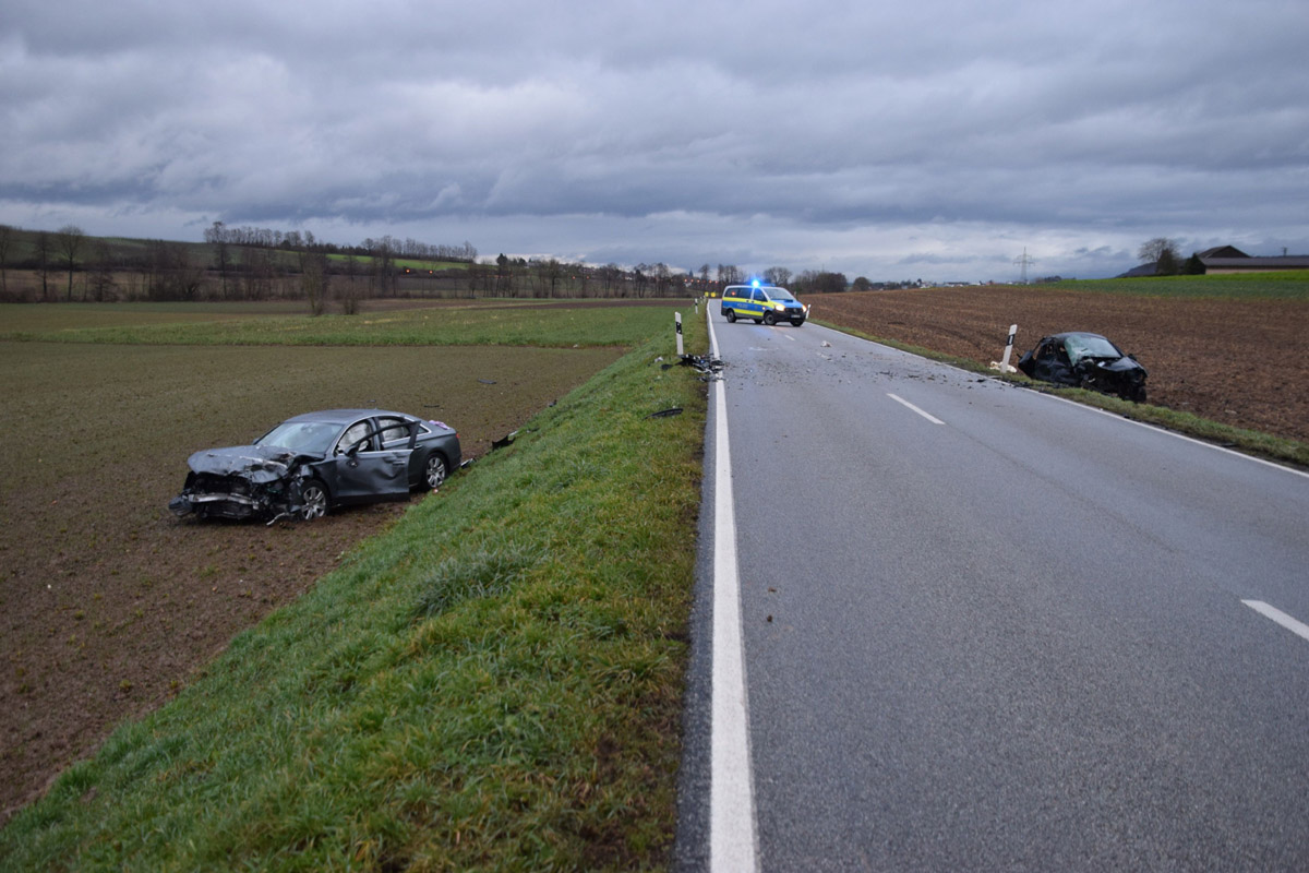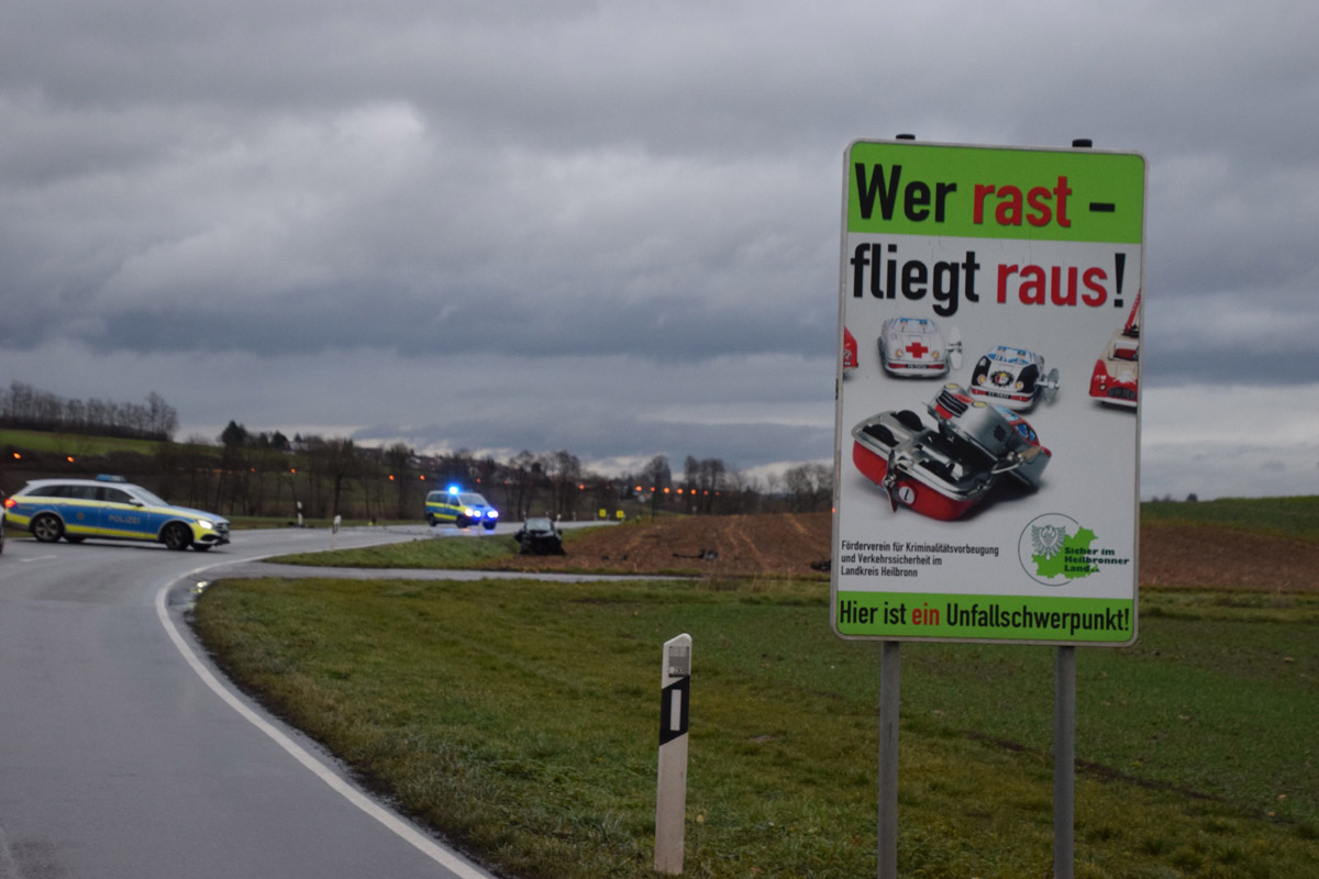 Schwaigern. (pol) Zwei schwerverletzte Pkw-Fahrer sind das Ergebnis eines Frontalzusammenstoßes am Montagnachmittag bei Schwaigern. Der 18-jährige Fahrer eines Fiat Panda fuhr kurz nach 15 Uhr von Stetten in Richtung Schwaigern, als er nach einer Rechtskurve die Kontrolle über seinen Fiat verlor und mit einem entgegenkommenden Audi A6 kollidierte. Sowohl der Pandafahrer als auch der 71-jährige Audilenker mussten schwerverletzte in Krankenhäuser gebracht werden. Der entstandene Sachschaden wird auf circa 60.000 Euro geschätzt. Die Kreisstraße zwischen Stetten und Schwaigern musste für die Dauer der Unfallaufnahme voll gesperrt werden. Als mögliche Unfallursache wird der Witterung nicht angepasste Geschwindigkeit angenommen.