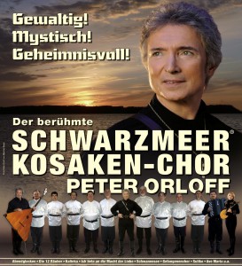 Anzeige SwopperBeeindruckende Pressestimmen von den 50er Jahren bis heute dokumentieren die Ausnahmestellung, die Peter Orloff selber als Solist des Schwarzmeer Kosaken-Chores damals wie heute innehat. Zahlreiche begeisternde Fernsehauftritte unterstreichen den Ruf des Schwarzmeer Kosaken-Chores als herausragendes Kosakenensemble unserer Zeit, wie zum Beispiel in den Sendungen „Melodien für Millionen“, „Zauberhafte Heimat“ oder „Ein Platz an der Sonne“ mit Liedern wie „Abendglocken“, „Schwarze Augen“, „Kalinka“ oder noch kürzlich dem „Wolgalied“.