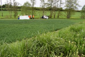 Sinsheim. (pol) Ein 77-jähriger Fahrer eines KIA Geländewagens, kam am Montag, gegen 15.30 Uhr, auf der L 550 zwischen Weiler und Sinsheim aus bislang unbekannter Ursache in einer leichten Rechtskurve nach links von der Fahrbahn ab. Anschließend fuhr er über das angrenzende Ackergelände und prallte nach ca. 100 Meter frontal gegen einen Baum. Hierbei zog sich der Fahrer schwere Verletzungen zu und musste mit einem Rettungshubschrauber in eine Klinik gebracht werden. Am PKW entstand Totalschaden. Die L 550 war bis gegen 17.45 Uhr halbseitig gesperrt. Es kam es zu geringfügigen Verkehrsbehinderungen.