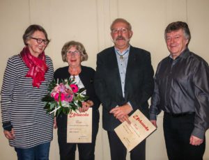 (zg) Bei der diesjährigen Jahreshauptversammlung des Kunstkreises Kraichgau standen Ehrungen langjähriger Mitglieder ganz am Anfang. Seit 40 Jahren dabei sind Gerd Kolb, Helga Kolb, Anton Kraus und Joachim Mall. Lothar Huber hält dem Verein seit 20 Jahren die Treue. Der 2. Vorsitzende Franz Blaser dankte mit einer Urkunde, die stellvertretende Vorsitzende Annerose Hassert überreichte anwesenden Jubilaren ein Geschenk.