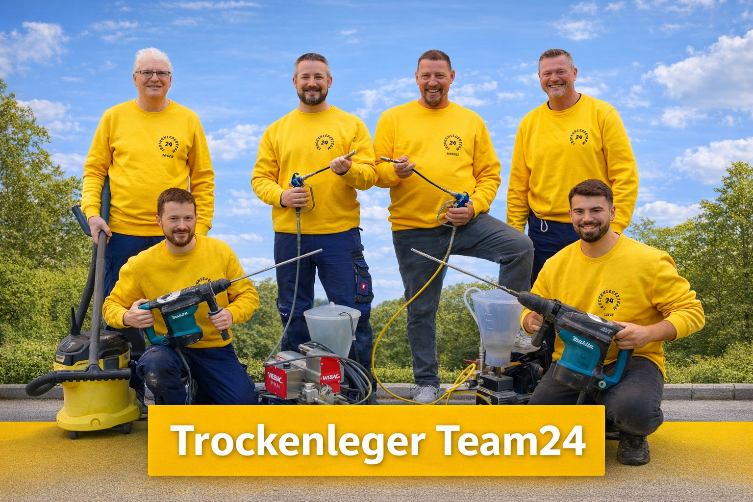 Was uns als Trockenleger Team24 ausmacht: Transparenz und Vertrauen. Der Kunde kann bei uns dabei sein, zuschauen, Fragen stellen. Wir erklären, was wir machen – ob beim Bohren, beim Verpressen oder bei der Auswahl der Materialien. Es gibt keine versteckten Abläufe. Wir arbeiten mit zertifizierten Materialien, unter anderem von WEBAC, und legen großen Wert darauf, dass der Kunde versteht, was gemacht wurde und warum. Er soll am Ende nicht nur trockene Wände haben, sondern auch ein gutes Gefühl.
