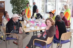 Selbstverständlich kam auch das leibliche Wohl nicht zu kurz – mit einem kleinen Haken: Von 522 (!) Berlinern waren zehn mit Senf gefüllt, und erstaunlicherweise fanden sich sogar Freiwillige, die sie verspeisten. Mit Kaffee und einer wilden Polonaise war die närrische Nahrung dann glücklicherweise schnell verdaut. Wer heftig feiern kann, kann offensichtlich auch gut arbeiten: „Am Ende haben Bewohner und Mitarbeiter rasend schnell gemeinsam aufgeräumt“, berichtet Yvonne Sonnenfroh, die in diesem Jahr übrigens als Kaiser Nero ging.