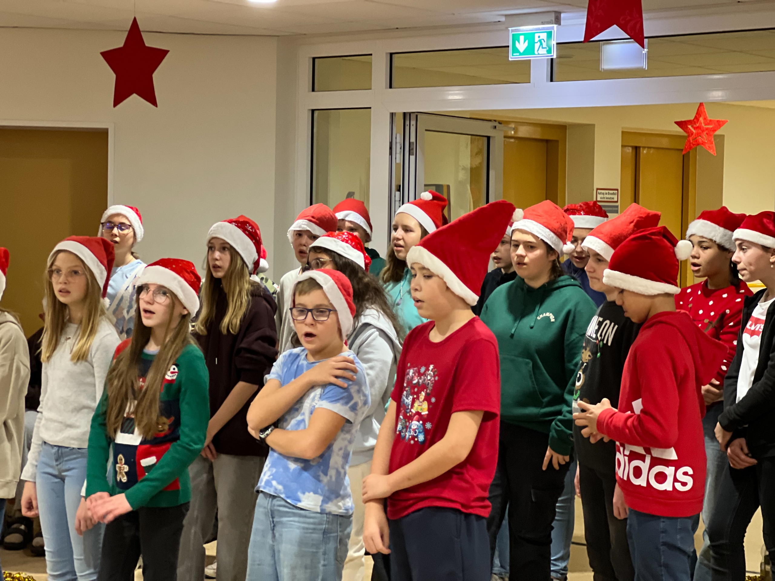Dieses Jahr starteten die Singklassen der Kraichgau-Realschule ihre Weihnachtstournee unter der Leitung von Heike Witt und Elena Buchalla mit einem Auftritt während des Weihnachtshauses, das am Nikolaustag stattfand.