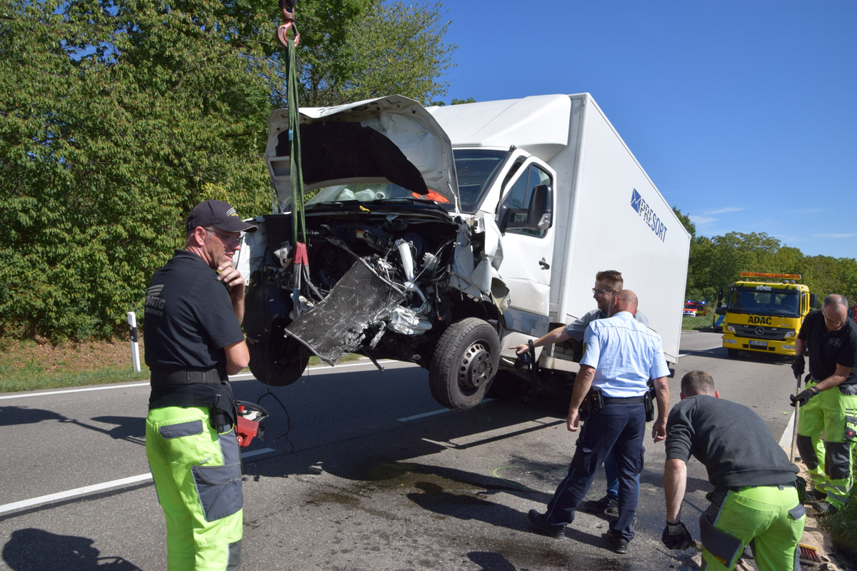 Beide Insassen des Kleinwagens erlitten so schwere Verletzungen, dass sie noch an der Unfallstelle verstarben. Der Fahrer des Kleinlasters wurde nach seiner notärztlichen Behandlung mit schweren Verletzungen per Rettungshubschrauber in eine Klinik geflogen.