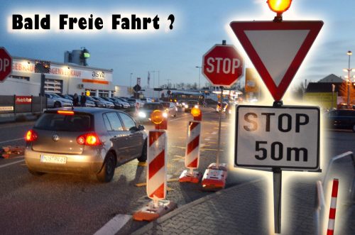 Herrscht bald wieder freie Fahrt durch die Neulandstraße ? Für viele Ortskundige ist der Inennstadtverkehr in den letzten Monaten zur Qual geworden. Große Umwege müssen in Kauf genommen werden, um vom Penny-Einkaufsmarkt zum TÜV zu kommen. Gewerbetreibende an der Sperrung melden sich der Redaktion und klagen über erhebliche Umsatzeinbußen.