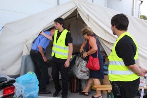 IMG_2500Davon überzeugten sich auch eine Abordnung der Landtagsbgeordneten Charlotte Schneidewind-Hartnagel und Thomas Funk. Sie stellten sich auch den Fragen und Nöten der Flüchtlinge. Leider lässt derzeit die Registrierung der Flüchtlinge in Karlsruhe etwas zu wünschen übrig und es kommt leider vor das Flüchtlinge nach Karlsruhe gefahren werden und wieder zurück ohne das eine Registrierung stattgefunden hat. Hier ist eine Verbesserung dringend notwendig. Manche der Flüchtlinge befinden sich bereits in der 10. Notunterkunft. Dies ist natürlich nicht zufriedenstellend. Trotzdem haben die Helfer in Sinsheim alles bestens im Griff und auch die Ängste mancher Bürger haben sich nicht bewahrheitet. Bis Mitte September wird der Einsatz in Sinsheim noch andauern, dann wird wohl ein neuer Platz gesucht werden müssen, das die bevorstehenden Messen wie gewohnt durchgeführt werden können. Schön wäre es wenn man die Hilfsbereitschaft der Sinsheimer auch auf die bestehenden Unterkünfte auf Dauer nutzen könnte. Darüber sollte sich die Stadt Sinsheim Gedanken machen wie diese Hilfsangebote organisiert und nutzbar gemacht werden können. Mein Dank gebührt heute der Hilfsbereitschaft der Sinsheimer Bevölkerung.