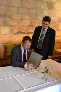 (zg) Am 13.07.2017 fiel der offizielle Startschuss für die neue Tourismus-Kooperation „Sinsheimer Erlebnisregion – Der Norden des Südens“. Oberbürgermeister Jörg Albrecht begrüßte die Bürgermeister der beteiligten Gemeinden Angelbachtal, Epfenbach, Helmstadt-Bargen, Neckarbischofsheim, Neidenstein, Reichartshausen, Waibstadt und Zuzenhausen zur Unterzeichnung der Kooperationsvereinbarung auf der Burg Steinsberg. Hoch erfreut zeigten sich die Bürgermeister darüber, dass es möglich war, die Zusammenarbeit gemeinsam auf den Weg zu bringen.